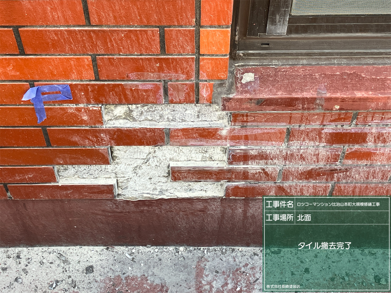 - ひび割れたタイルを剥がし張り替える工程です。