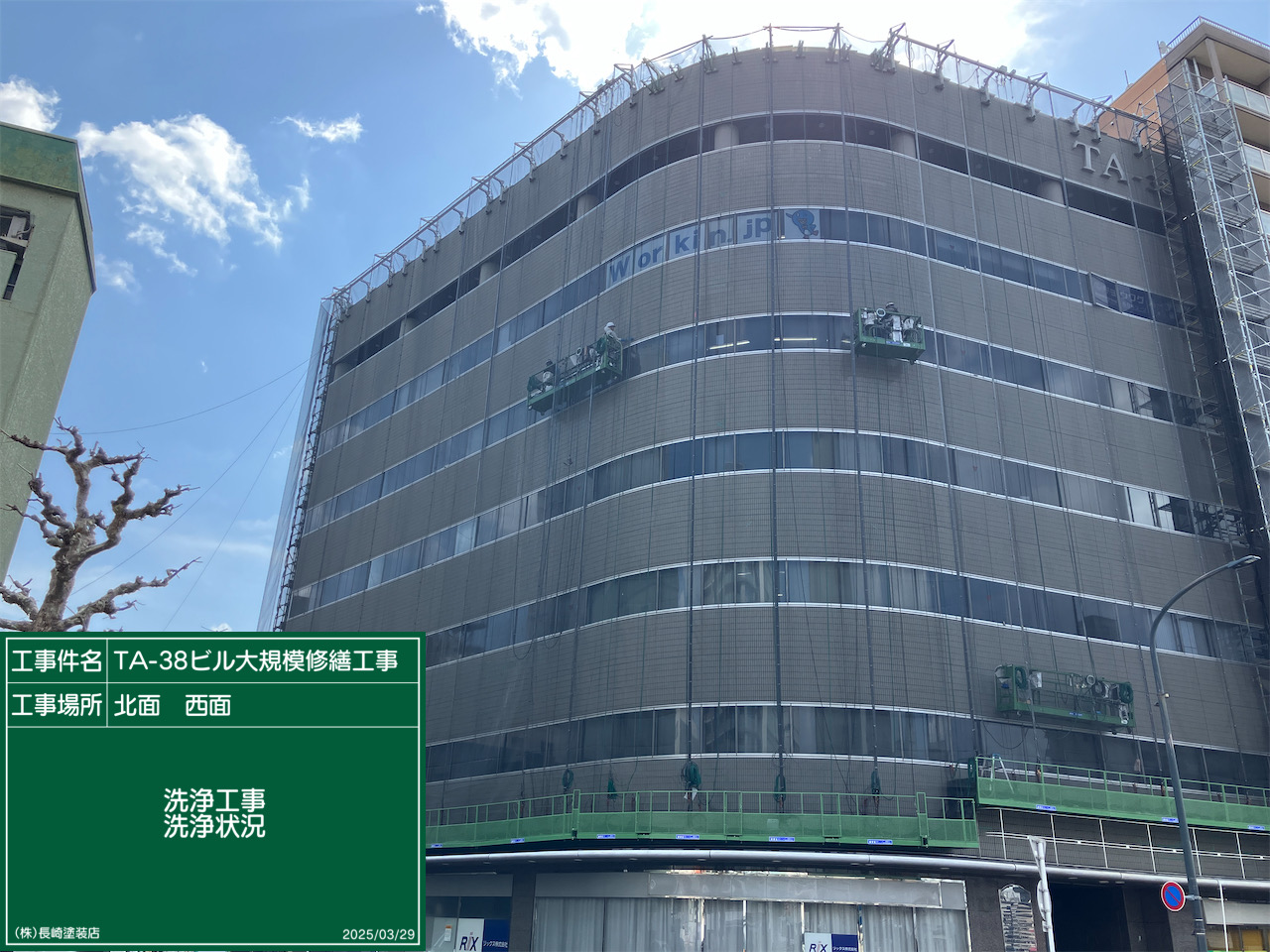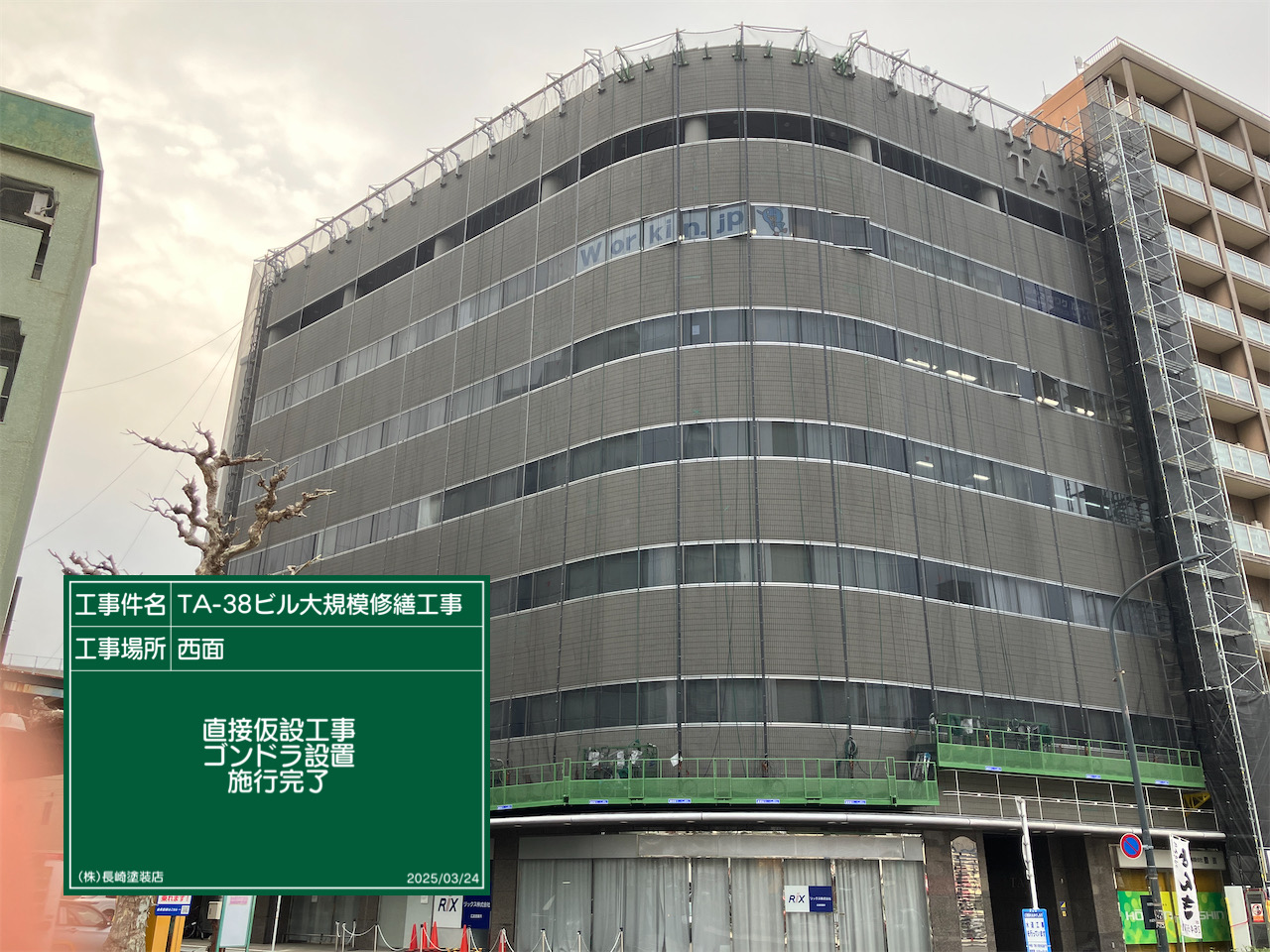 市街地で交通量が多いためゴンドラでの施工を選択しました。