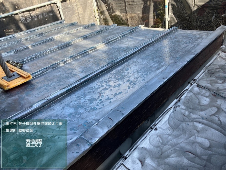 建物の一部である鋼製屋根を塗り替えました。下地処理は入念に行います。